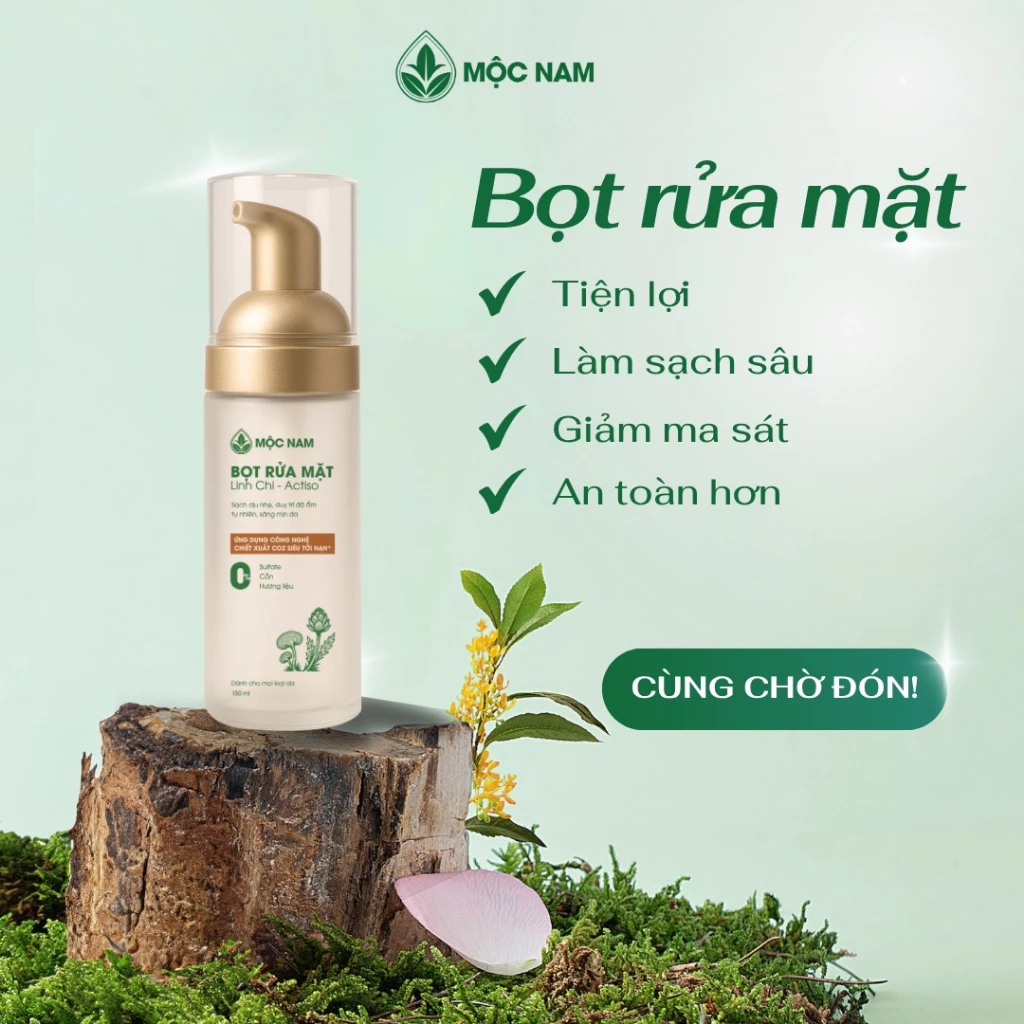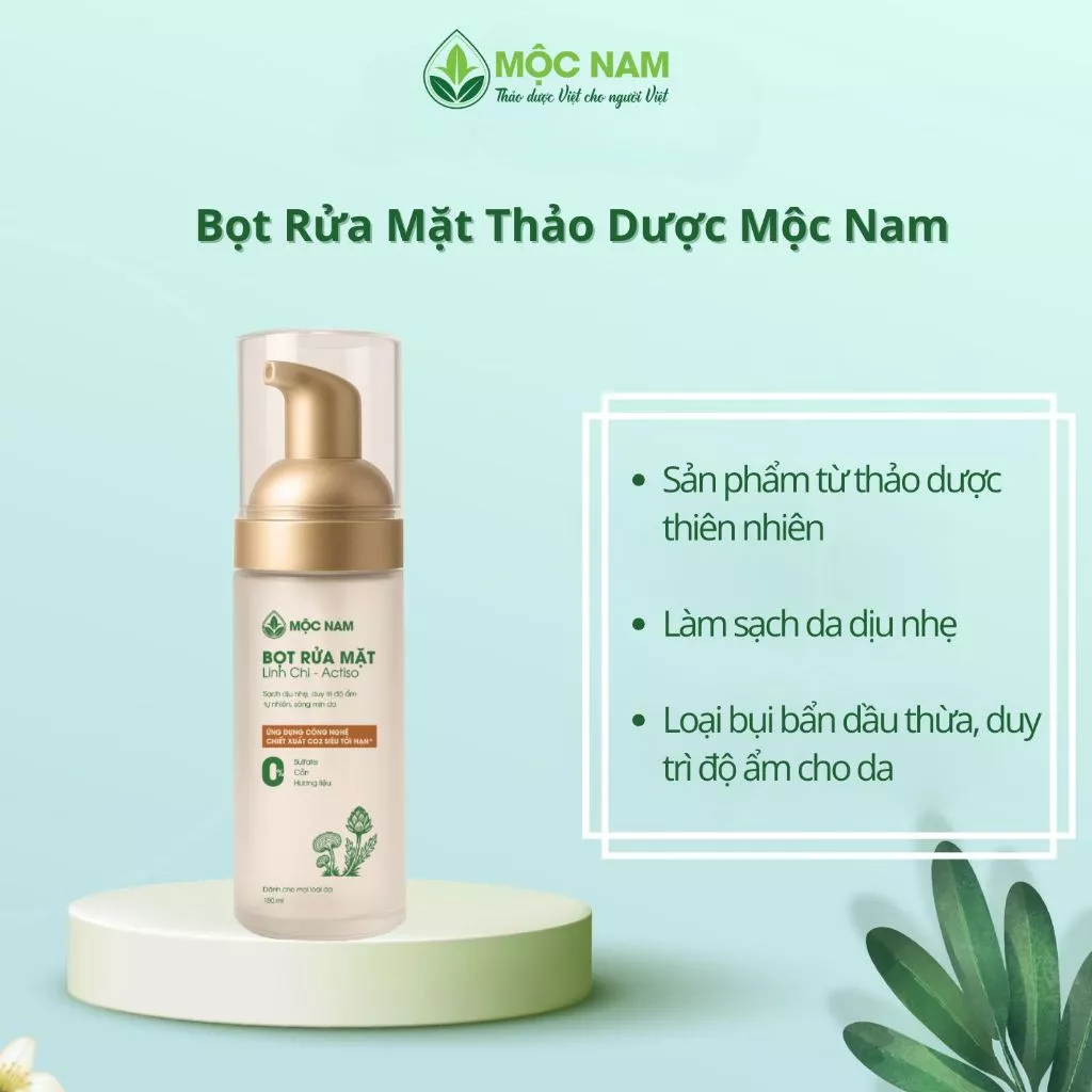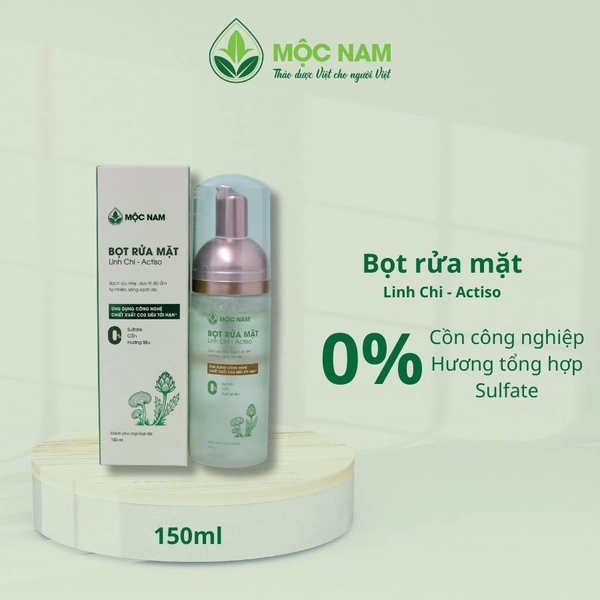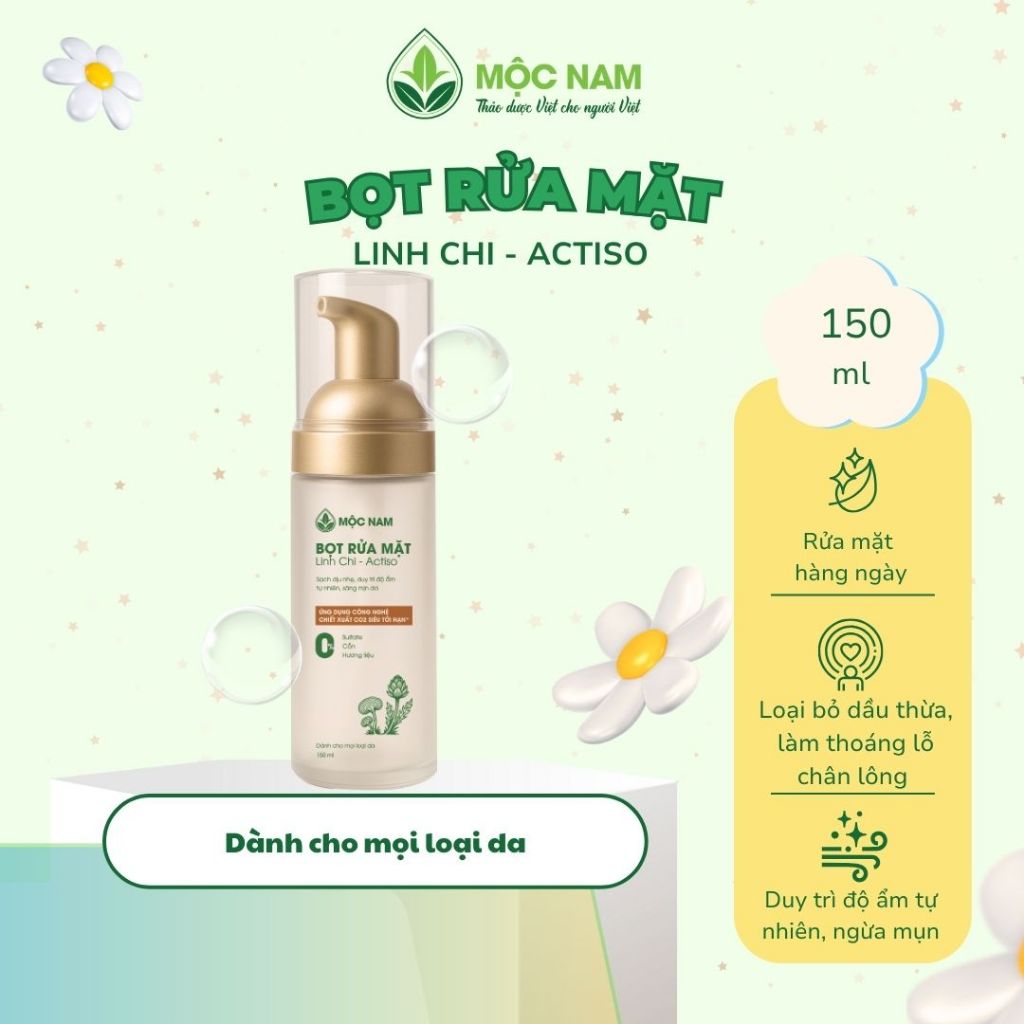 Bọt rửa mặt Linh Chi Actiso Mộc Nam 150ml ứng dụng công nghệ chiết xuất CO2 siêu tới hạn và các dược liệu Việt như Linh Chi, Actiso, Cám gạo, Lô Hội,... phù hợp cho mọi loại da.