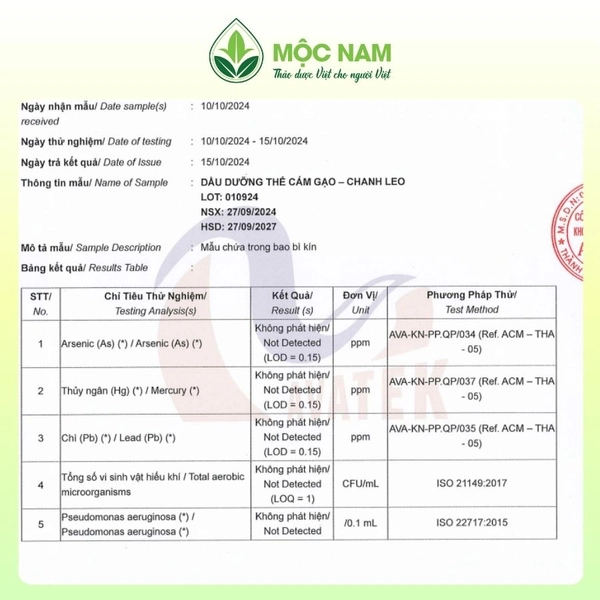 Isopropyl Myristate, Caprylic/Capric Triglyceride, Oryza Sativa Bran Oil (Dầu Cám Gạo), Persea Gratissima (Avocado) Oil (Dầu Bơ), Passiflora Edulis (Passion Fruit) Seed Oil (Dầu Hạt Chanh Leo), Vitis Vinifera (Grape) Seed Oil (Dầu Hạt Nho), Prunus Amygdalus Dulcis (Sweet Almond) Oil (Dầu Hạnh Nhân), Helianthus Annuus (Sunflower) Seed Oil (Dầu Hạt Hướng Dương), Momordica Cochinchinensis Seed Oil (Dầu Gấc), Citrus Limon Peel Essential Oil (Tinh Dầu Vỏ Chanh), Lavandula Angustifolia Essential Oil (Tinh Dầu Oải Hương), Pelargonium Graveolens Essential Oil (Tinh Dầu Phong Lữ), Tocopheryl Acetate (Vitamin E).