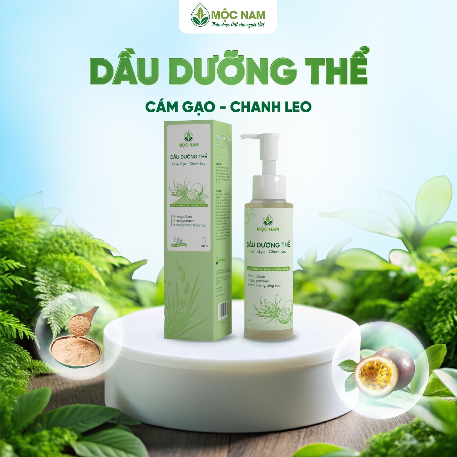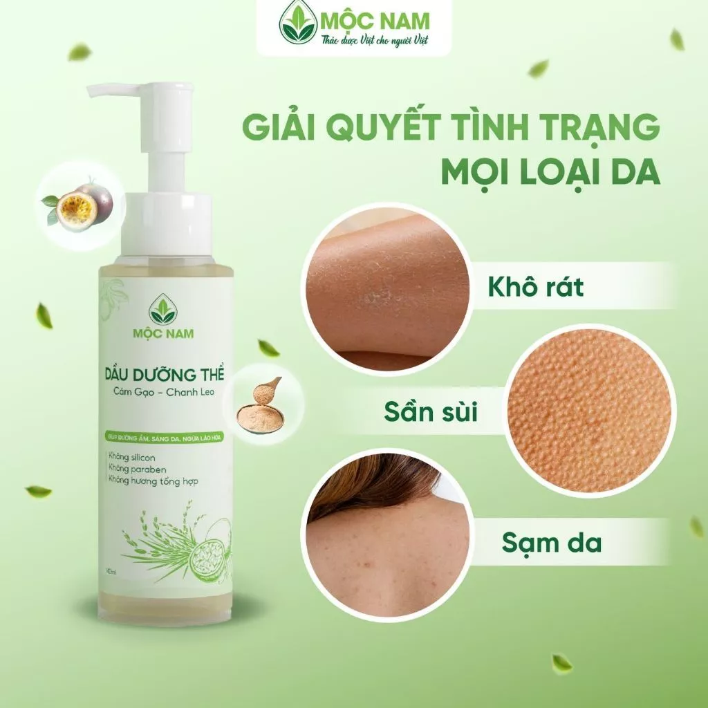 Dầu dưỡng thể Cám Gạo - Chanh Leo Giúp dưỡng ẩm, sáng da, ngừa lão hóa với thành phần thiên nhiên an toàn và lành tính.