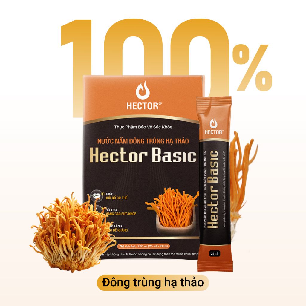 Với thành phần 100% từ Nấm Đông trùng hạ thảo, sở hữu đa dạng các hoạt chất Adenosine, Cordycepin, 17 loại acid amin cùng các khoáng chất thiết yếu khác cho cơ thể Hector Basic là giải pháp chăm sóc sức khoẻ lý tưởng. Vừa đảm bảo tính an toàn, lành tính. Vừa mang đến hiệu quả trong việc cải thiện sức khoẻ.