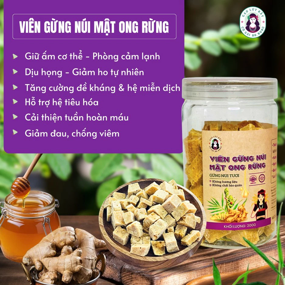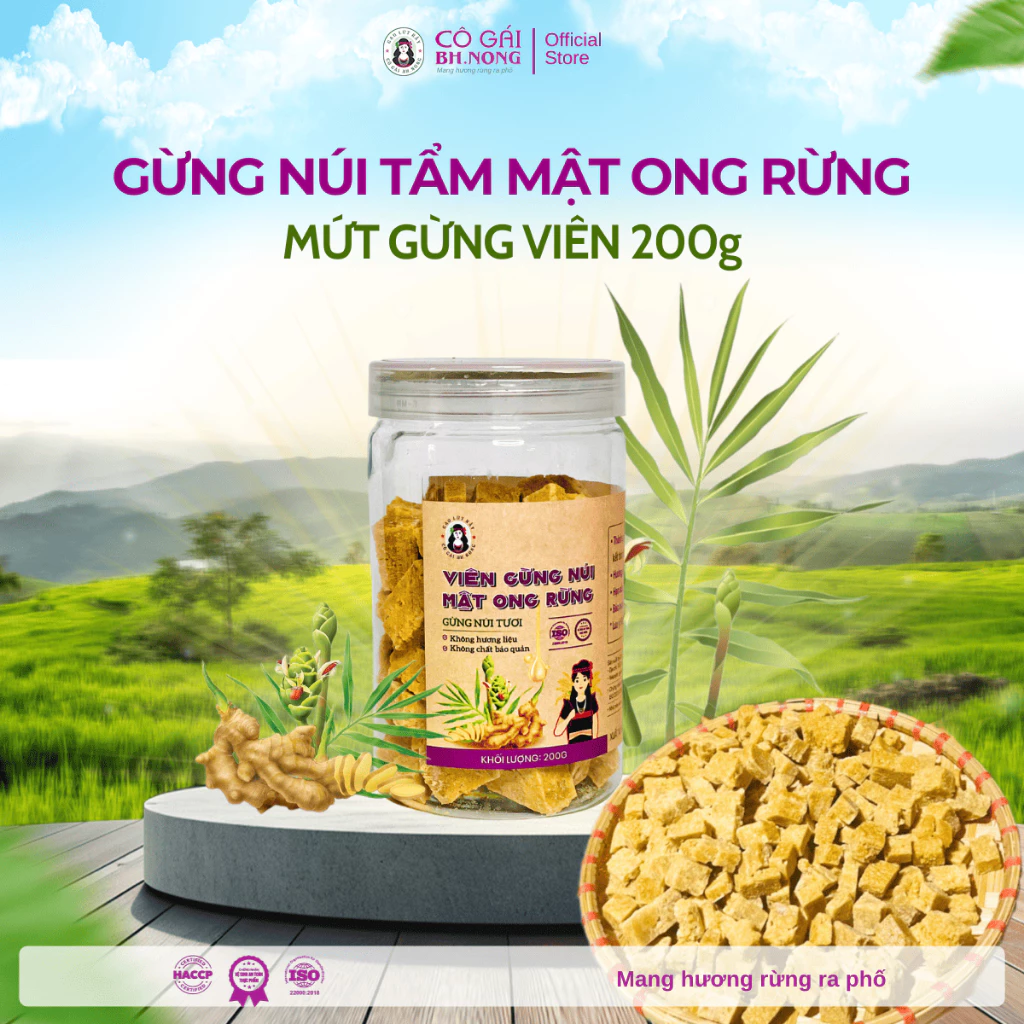 GỪNG NÚI TẨM MẬT ONG RỪNG BH.NONG - DẠNG VIÊN, một phiên bản độc đáo từ Bh.nong, Gừng Núi Tẩm Mật Ong Rừng dạng viên mang đến trải nghiệm mới mẻ nhưng vẫn giữ trọn hương vị truyền thống. Những viên gừng nhỏ gọn, tiện lợi, đậm đà vị gừng núi tự nhiên hòa quyện cùng mật ong rừng, tạo nên món ăn không thể thiếu trong những ngày đông giá lạnh hay mùa Tết sắp đến.