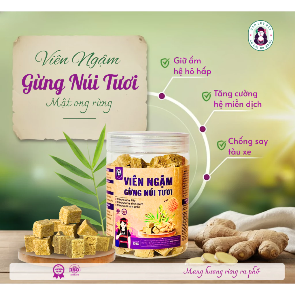 Gừng sẻ núi (45%), mật ong rừng, đường mía, mạch nha.