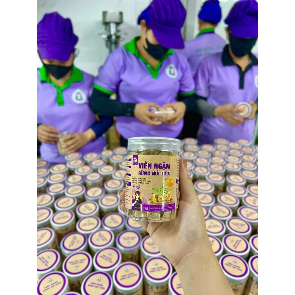 - Sên gừng cùng mật ong rừng và đường phèn ở nhiệt độ thích hợp. Không dùng thêm hoá chất tạo kết dính.